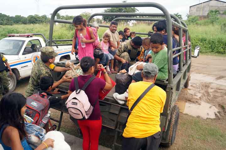 Soldados del Ejército Mexicano ayudaron a decenas de damnificados por los fenómenos meteorológicos Ingrid y Manuel a regresar a sus hogares; muchas de las familias retornaron al estado de Guerrero, de donde salieron para refugiarse en Michoacán por las intensas lluvias.
