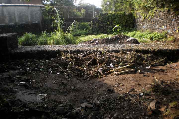La presa de gavión que se construye en la "Barranca de la Guerra", en la desembocadura hacia el manantial "Rodilla del Diablo" en el Parque Nacional "Barranca del Cupatitzio", ha logrado retener gran cantidad de basura y azolve durante los recientes días en que ha llovido abundantemente.