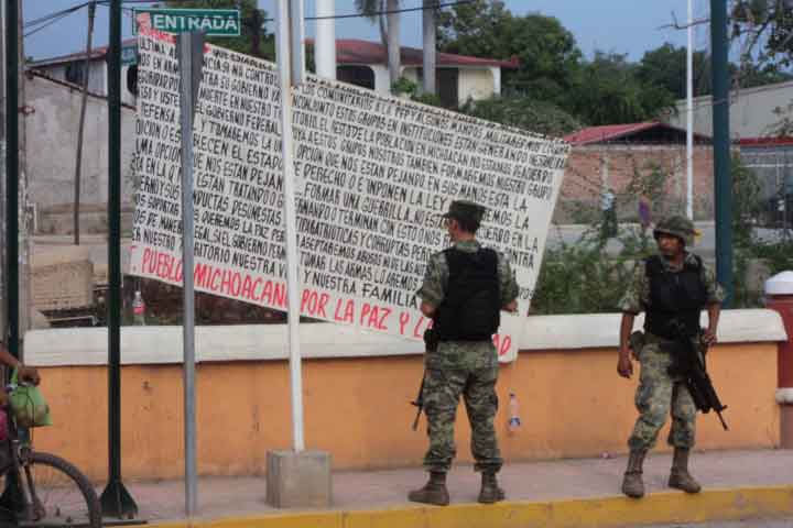 Varias mantas fueron colocadas en distintos puntos de la geografía michoacana nuevamente dirigidas contra las denominadas "Policías Comunitarias", dichos rótulos no estaban firmados por ningún grupo delictivo, pero amagaban al gobierno federal con formar una guerrilla si no se disuelven las autodefensas.