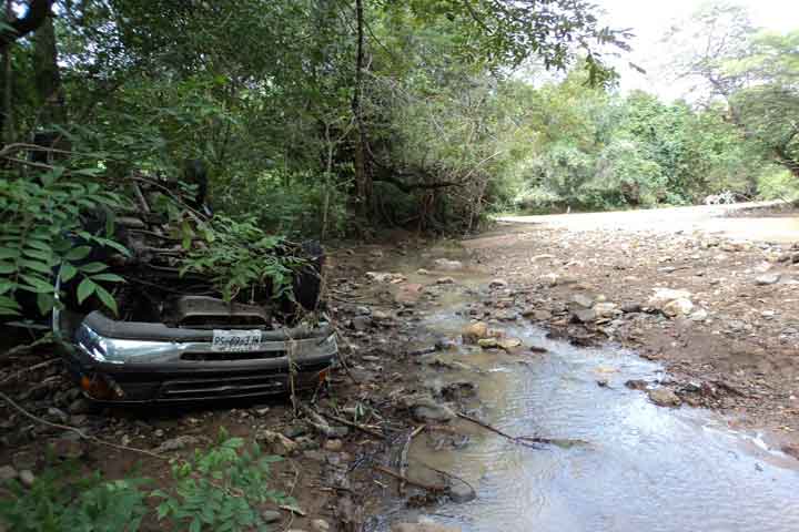 Un habitante de la comunidad de El Guayabo, perteneciente a San Lucas, se salvó de milagro cuando su camioneta fue arrastrada por una tromba al cruzar un río, ya que como pudo alcanzó a salir de la unidad y logró ponerse a salvo.