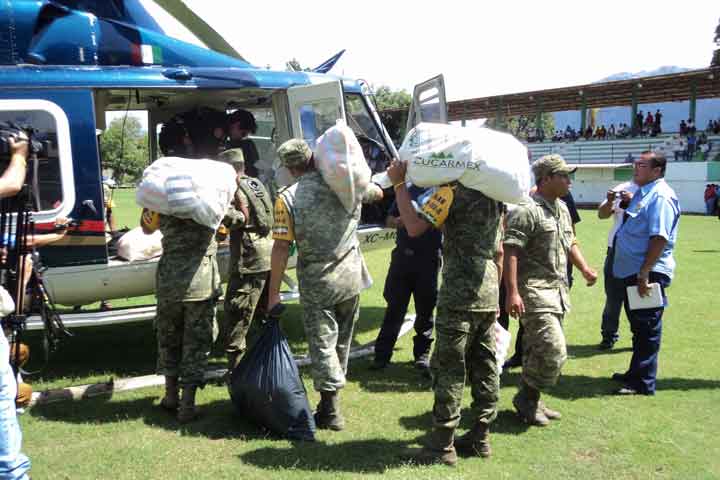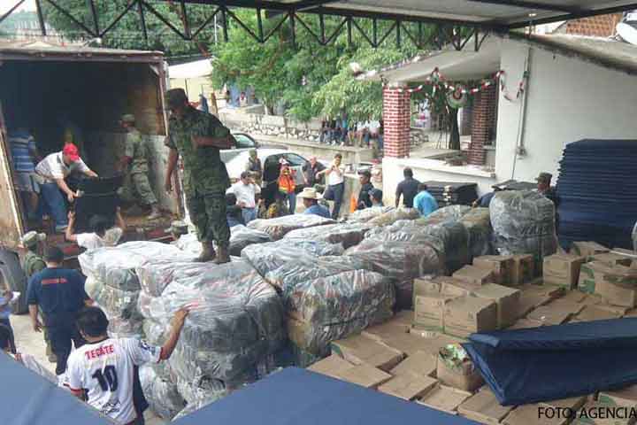 Luego de las múltiples afectaciones que dejó a su paso la tormenta tropical "Manuel", continúa llegando la ayuda a esta municipalidad, ahora de la Cruz Roja y del gobierno del estado de México.