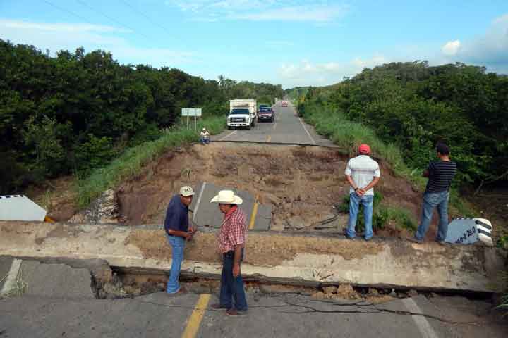 Se derrumbó otro puente vehicular a la altura del poblado conocido como El Bejuco 1, ubicado a 5 kilómetros del recientemente reparado puente Nexpan, esta última conexión vial ya es utilizada por los socorristas y personal del Ejército Mexicano, quienes continúan brindando ayuda a los damnificados que dejó el huracán "Manuel".