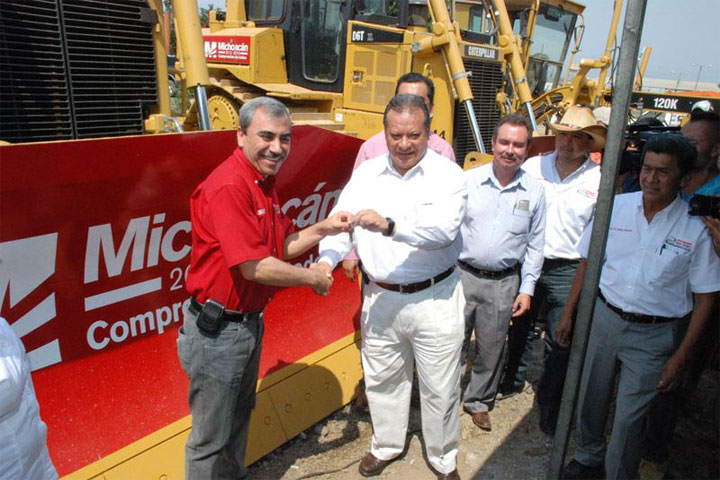 El secretario de Desarrollo Rural de la entidad, Ramón Cano Vega y Adrián Margosa Novoa, coordinador del programa Centrales de Maquinaria, entregaron a nombre del gobernador Jesús Reyna García, la maquinaria pesada a los presidentes municipales de la Región productora número uno de aguacate del mundo.