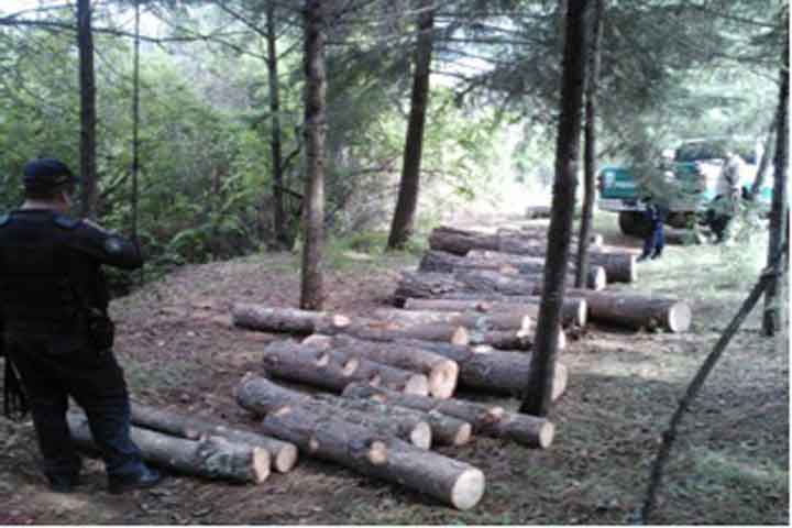 Elementos de la Policía Forestal del Estado, en coordinación con personal de la Procuraduría Federal de Protección al Ambiente (Profepa), realizó el aseguramiento de 55 piezas de madera de pino de diferentes dimensiones.