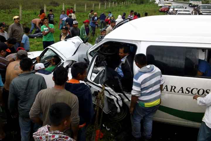 prensados, tras impactarse una camioneta tipo van del servicio de