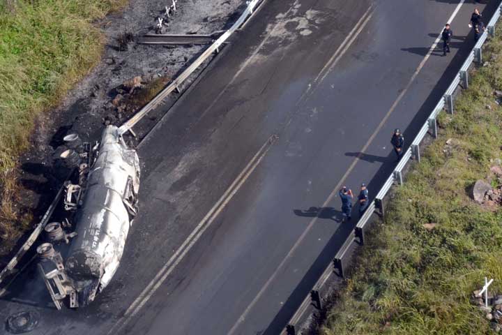 NOTICIAS 15/08/2012Estalla contenedor de gasolina en la Autopista Siglo 21"Como alma que lleva el diablo" circulaba un trailero por la Autopista Siglo 21 con dirección al puerto de Lázaro Cárdenas, quien trasladaba dos remolques con dos contenedores, los cuales iban cargados con 30 mil litros de gasolina cada uno, hasta que al llegar a una pendiente se le quemaron las balatas y al quedarse sin frenos al tomar una curva, decidió soltar uno de los recipientes que ya se incendiaba para luego retirarse del lugar y salv... Ver más...