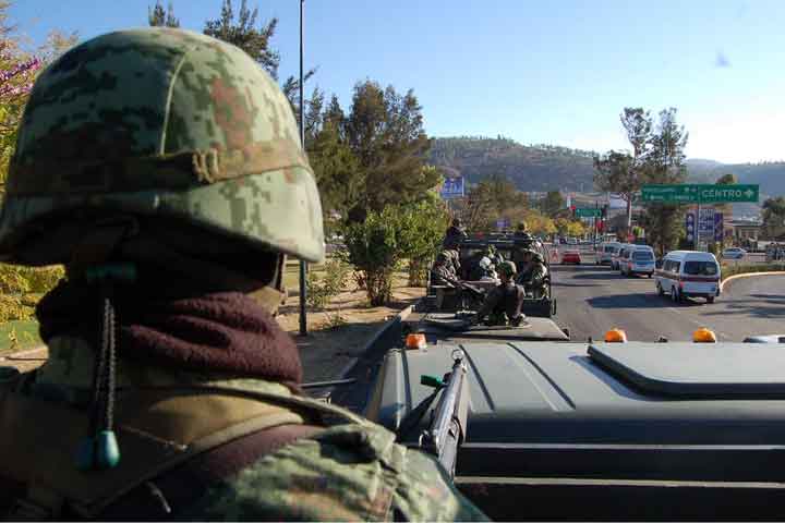Efectivos del Ejército Mexicano apoyados por policías federales, vigilan la Meseta Purépecha y la región de Tierra Caliente, donde las fuerzas castrenses establecieron retenes de seguridad.