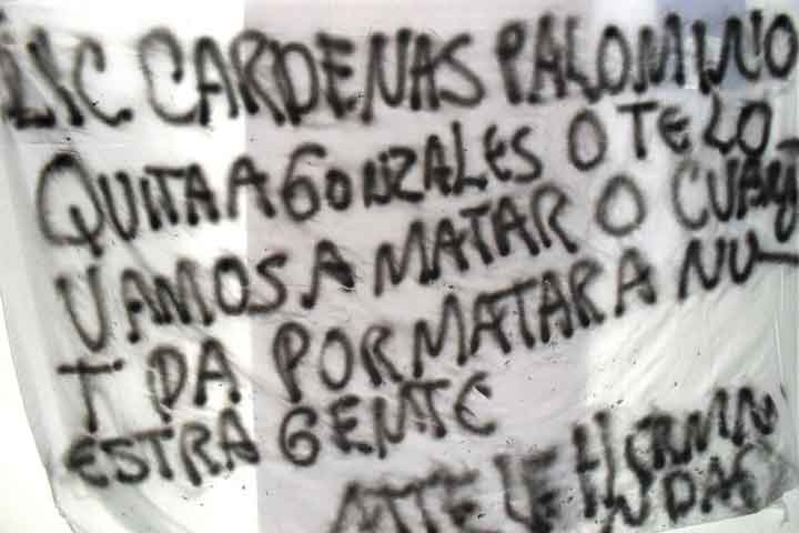 Los rótulos eran dedicados al jefe de la División Regional de la Policía Federal, Luis Cárdenas Palomino, a quien hace algunas semanas también se l... Ver más...
