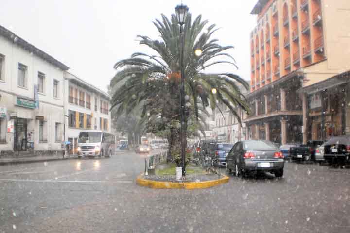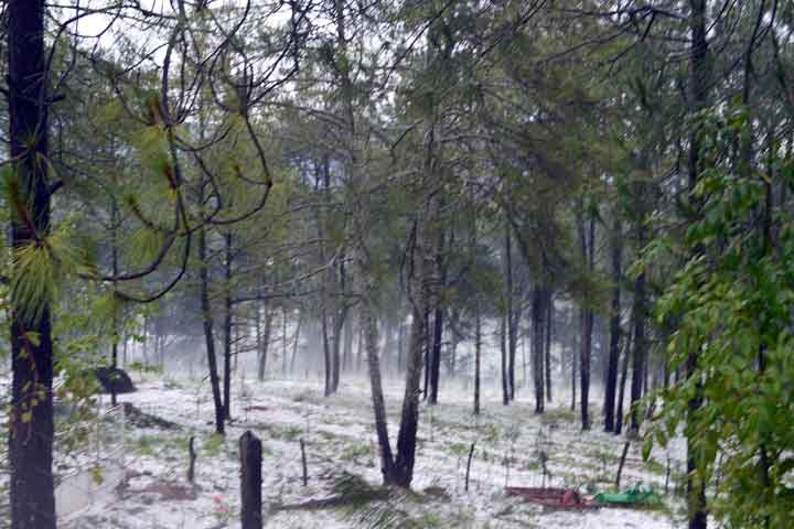 Alrededor de las 18:00 horas, según dijeron algunos vecinos, empezó a caer una fuerte tormenta seguida de grandes pedazos de hielo, del tamaño de una canica, lo que rápidamente blanqueó la carretera Villa Madero-Morelia, los cerr... Ver más...