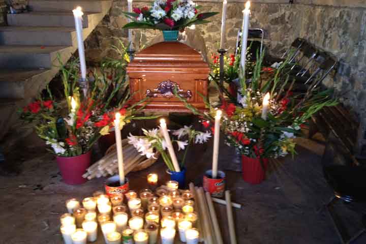 En medio de una relativa calma, pero sobretodo de profunda tristeza familiares de los dos comuneros asesinados, luego de desaparecer el pasado domingo, lloran a sus muertos. Hasta el medio día de este miércoles continúan siendo velados los cuerpos de Urbano Macías Rafael y Guadalupe Gerónimo Velázquez, cada uno en sus domicilios y no en la plaza principal de Cherán como se había hecho con las víctimas anteriores.