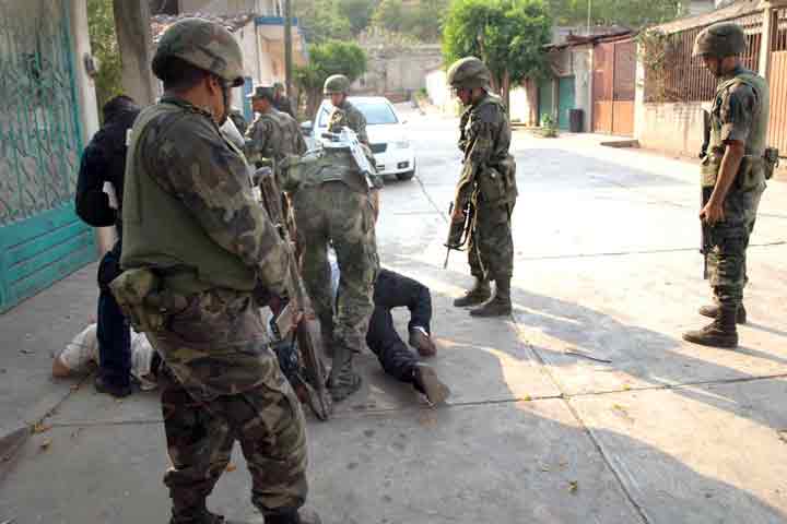 NOTICIAS 06/06/2012Militares capturan a dos en TangancícuaroDos presuntos delincuentes, a quienes se les encontraron armas y droga en su poder, fueron detenidos en una movilización del Ejército Mexicano realizada en el poblado de Francisco J. Múgica, perteneciente al municipio de Tangancícuaro.