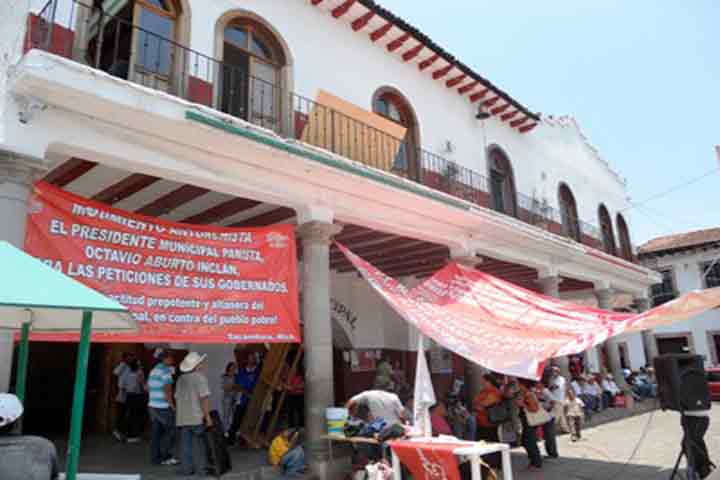NOTICIAS 08/06/2012Antorcha Campesina instala plantón indefinido en TacámbaroLos habitantes del municipio de Tacámbaro que militan en el Movimiento Antorchista se instalaron en plantón indefinido frente al palacio municipal, para protestar la nula atención de parte del alcalde municipal Octavio Aburto Inclán a las peticiones de sus gobernados, quienes requieren de obras para las colonias pobres.