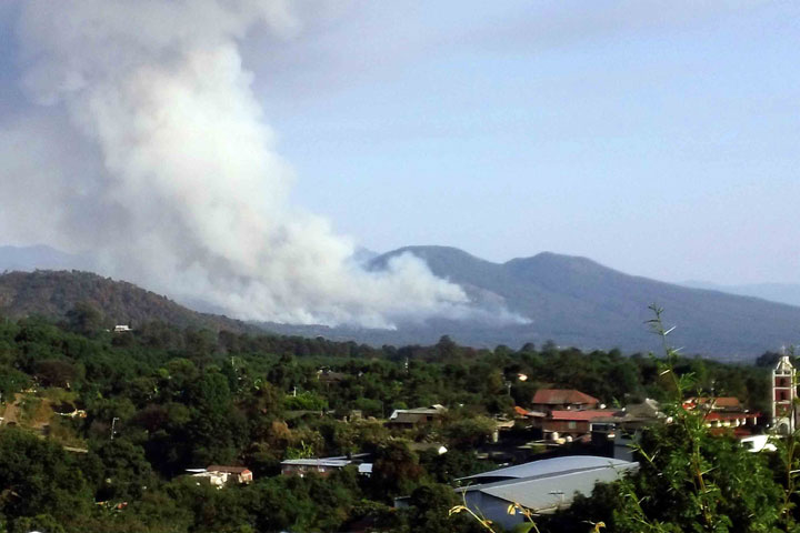 NOTICIAS 12/04/2012Arden más de 40 hectáreas en la Meseta PurépechaTras la devastación de unas 80 hectáreas por el incendio en el cerro de La Cruz en Uruapan el pasado lunes, ahora arden más de 40 hectáreas más en el cerro El Cobrero, en el municipio de Ziracuaretiro, asà como el cerro de Kurhiterán, en los lÃmites de las comunidades indÃgenas de Zacán y Angahuan.