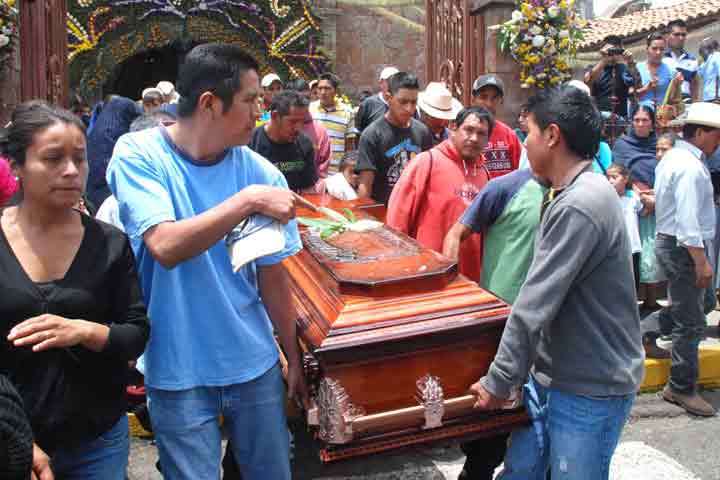 NOTICIAS 19/04/2012Centenares en el sepelio en Cherán y Santa Cruz TanacoUna multitud se unió en un solo dolor, en una sola pena e impotencia. Tras una larga noche de velorio, una de las vÃctimas fue llevada a su última morada, bajo un intenso sol y las notas musicales de una banda y el repicar de las campanas de la iglesia del pueblo; a pesar de ser un sepelio, el colorido de flores, coronas y velas se veÃa a lo largo de varias cuadras.