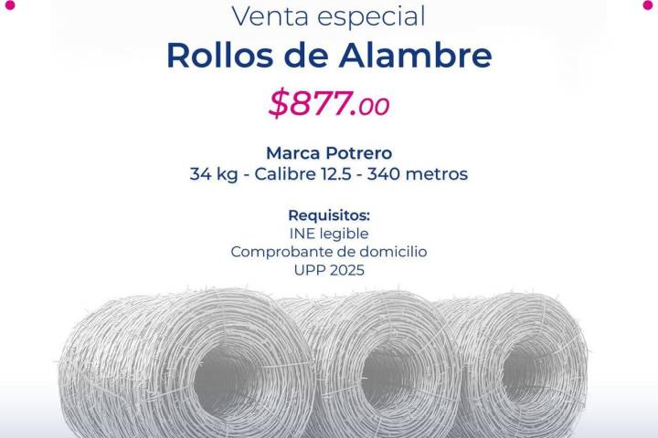 NOTICIAS 05/11/2025Impulsa el Ayuntamiento de Quiroga a productores locales con venta especial de alambre a bajo costoGracias a las gestiones realizadas por la presidenta municipal, Alma Mireya González Sánchez, ante el Gobierno del Estado de Michoacán, a través de la Secretaría de Agricultura y Desarrollo Rural (SADER), el Ayuntamiento de Quiroga pone en marcha una venta especial de rollos de alambre marca Potrero.