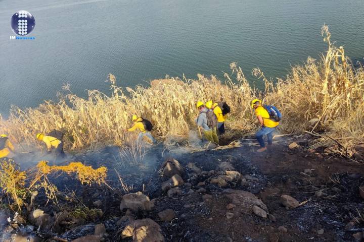 Siguiendo el protocolo para la atención de incendios forestales, los brigadistas realizan brechas cortafuego para evitar que las llamas se propaguen y pode... Ver más...