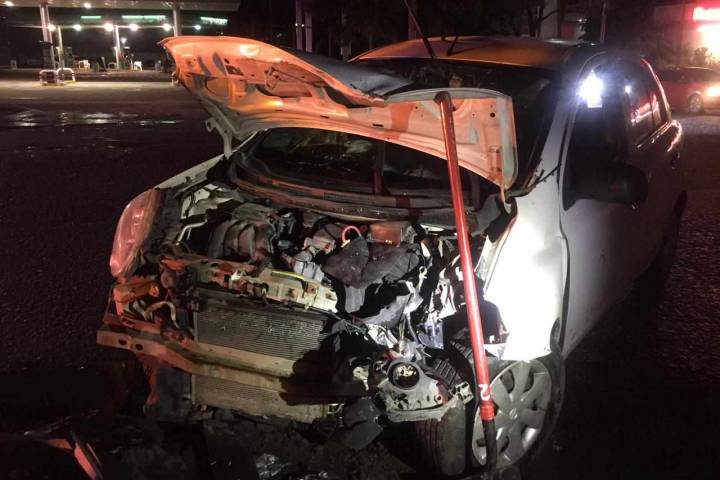El fuerte choque se reportó la madrugada de este viernes en las inmediaciones del entronque de "Las Adelitas", donde el chofer de un Nissan March de color blanco, al parecer se quedó dormido y terminó ´por impactar contra la base de dicho semáforo.