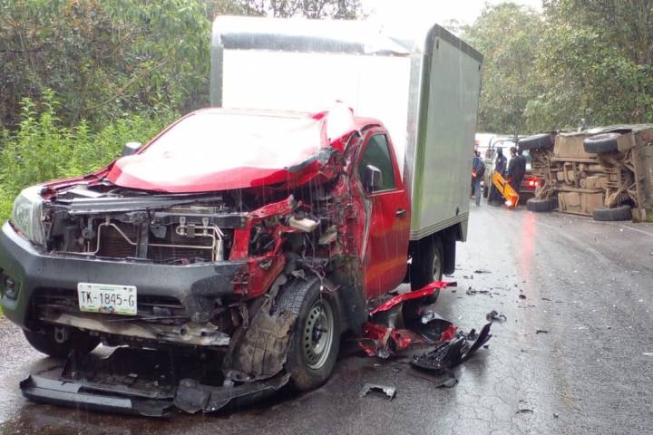 Al menos seis elementos de la Secretaría de la Defensa Nacional resultaron lesionados al registrarse un choque frontal entre una camioneta repartidora y un vehículo militar, que tras el impacto terminó volcado.