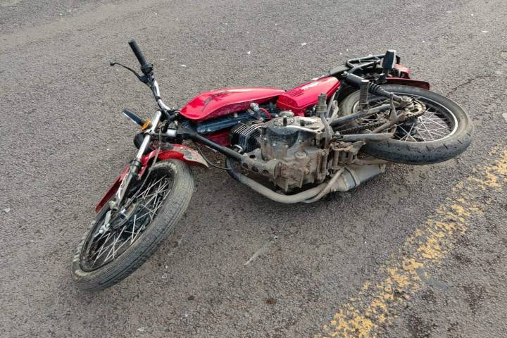 Un hombre resultó con diversos golpes y raspones, al impactar su motocicleta contra un automóvil al intentar cruzar la carretera, según informaron algunos testigos.