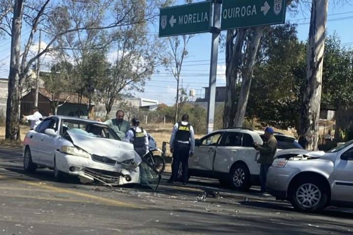 Al menos tres vehículos protagonizaron un choque sobre la carretera Morelia-Quiroga, a la altura de la entrada a la Tenencia de Capula, en el municipio de Morelia, informaron autoridades policiales y de rescate.