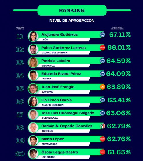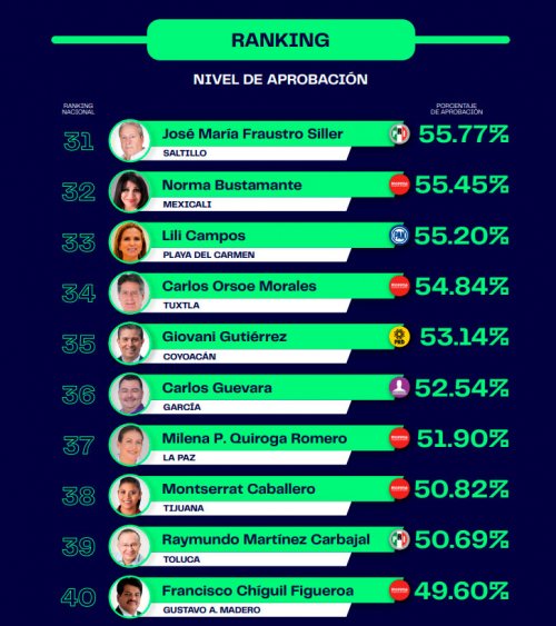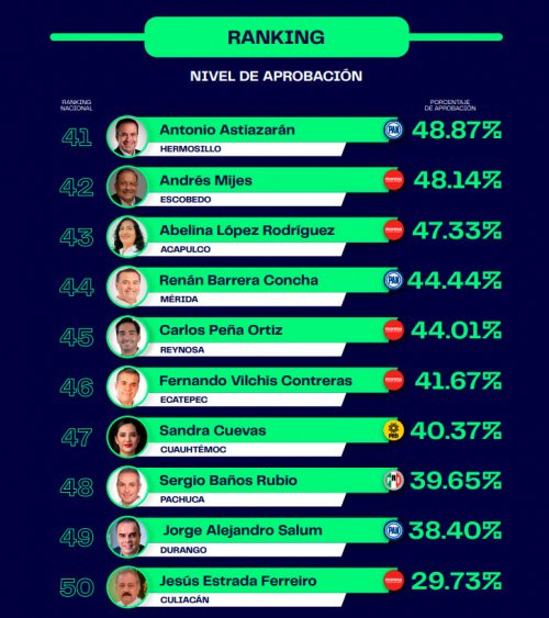 FEB 232022 La casa encuestadora Poligrama realizó un estudio de opinión para conocer cómo se encuentra la evaluación de los alcaldes de las 50 ciudades con una importante actividad económica en el país. Para poder conocer los resultados se realizaron 500 entrevistas telefónicas por cada municipio a hombres y mujeres mayores de edad entre los días 7 y 20 de febrero en diferentes horarios. En la encuesta no solo se tomó en cuenta la aprobación, también se cuestionó a las personas cuál es el mayor problema en sus ciudades en donde se destacaron los temas de inseguridad, servicios públicos, falta de empleo o mejores salarios, salud, contaminación y otros. Los resultados arrojaron el siguiente ranking: