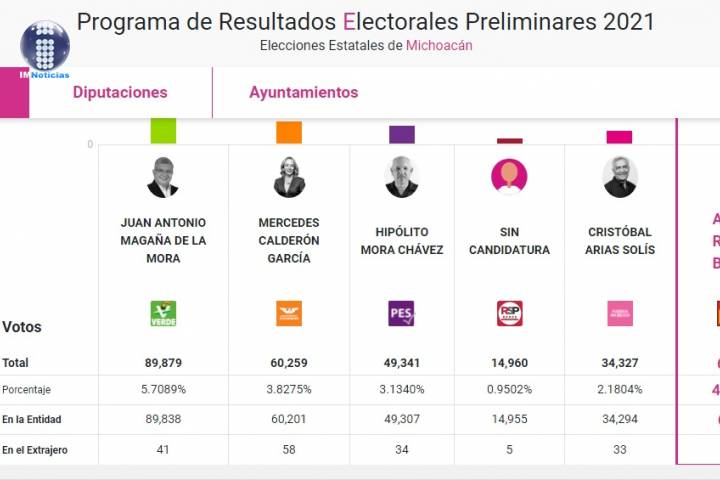 El Programa de Resultados Electorales Preliminares (PREP) cerró su labor a las 20:00 horas como lo indicaban los lineamientos del Instituto Electoral de Michoacán (IEM) con una ventaja de 2.5 puntos porcentuales en favor del candidato a la gubernatura del estado por Movimiento Regeneración Nacional (Morena), Alfredo Ramírez Bedolla.