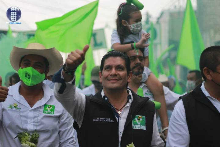NOTICIAS 01/06/2021En Michoacán no habrá declinaciones por nadie; todo el respaldo para Magaña de la Mora: Partido VerdeEl dirigente estatal del Partido Verde Ecologista de México en Michoacán (PVEM), Ernesto Núñez Aguilar, descartó toda posibilidad de que el candidato al gobierno del estado, Juan Antonio Magaña de la Mora, decline a favor de algún otro candidato en la recta final de la contienda.