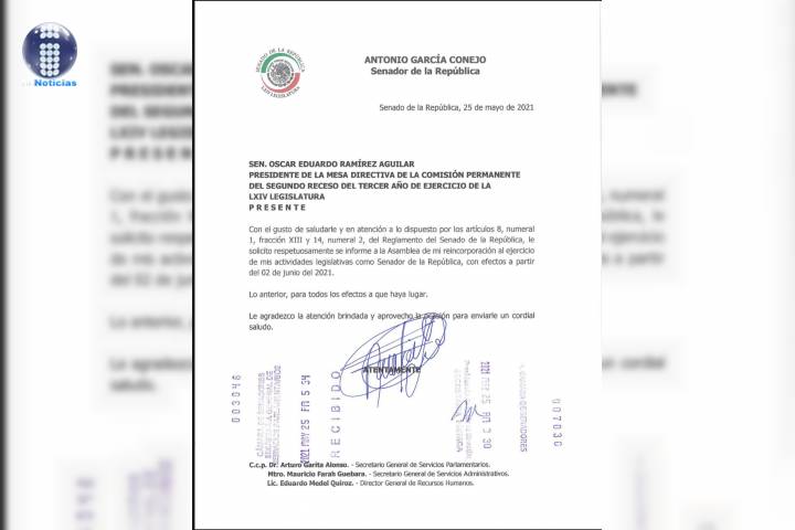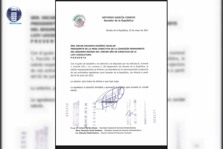 NOTICIAS 28/05/2021Toño García se baja de campaña de Carlos Herrera; regresa al SenadoEl senador Antonio García Conejo se bajó de la campaña de Carlos Herrera Tello y decidió reincorporarse a sus funciones legislativas, luego de que desde el pasado 3 de marzo solicitara licencia para acompañar al candidato del PRI, PAN y PRD en su campaña por la contienda de la gubernatura de Michoacán.