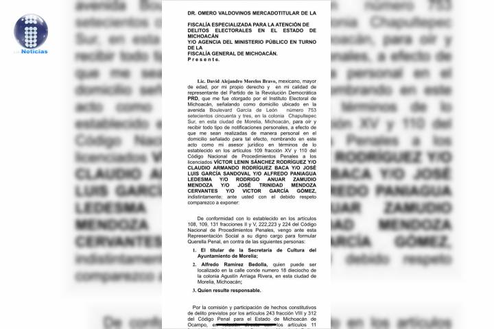 NOTICIAS 28/05/2021PRD recurre a recurso legal por presunta promoción municipal a favor de candidato morenistaEl Partido de la Revolución Democrática presentó ante la Fiscalía Especializada para la Atención de Delitos Electorales de Michoacán una denuncia contra el candidato de la Coalición Juntos Haremos Historia en el estado, la Secretaría de Cultura de Morelia y contra quien resulte responsable por supuesta promoción a favor de Alfredo Ramírez Bedolla.