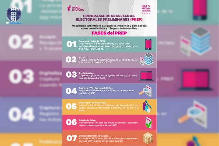 NOTICIAS 16/05/2021Realiza IEM primer simulacro del PREPEl Instituto Electoral de Michoacán (IEM), realizó este domingo el primero de los tres simulacros para verificar la recepción, captura y transmisión de la información del Programa de Resultados Electorales Preliminares (PREP), que se utilizará para el Proceso Electoral Local 2020-2021.