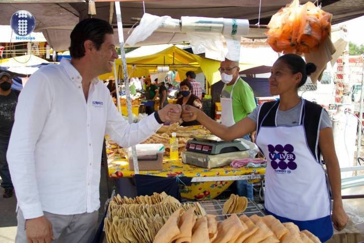 NOTICIAS 12/05/2021Sin parar, Alfonso Martínez recorre los tianguis de MoreliaSin parar, el candidato a la presidencia municipal de Morelia, Alfonso Martínez Alcázar, continúa recorriendo los tianguis de la capital michoacana para escuchar las necesidades de las y los comerciantes, así como compartir sus propuestas de campaña.