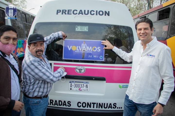 "Vamos con Alfonso porque queremos que recupere la seguridad en Morelia y porque queremos volver a trabajar en sinergia con el Ayuntamiento a favor del transporte público", afirmó el presidente de la Corporación Michoacana de Transportistas de Pasaje Suburbano y Foráneo A.C. (COMIT), Marco Antonio Saucedo Zavala. Durante la pega de calcas a más de 200 unidades del servicio urbano y suburbano de la ciudad, Marco Saucedo, refrendó el res...