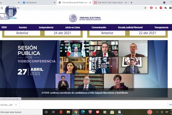 NOTICIAS 27/04/2021TEPJF cancela candidatura de Raúl Morón OrozcoEl Tribunal Electoral del Poder Judicial de la Federación (TEPJF) dictaminó 5 votos contra dos que la cancelación de la candidatura de Raúl Morón Orozco a la gubernatura de Michoacán emitida por el Instituto Nacional Electoral (INE) fue adecuada.