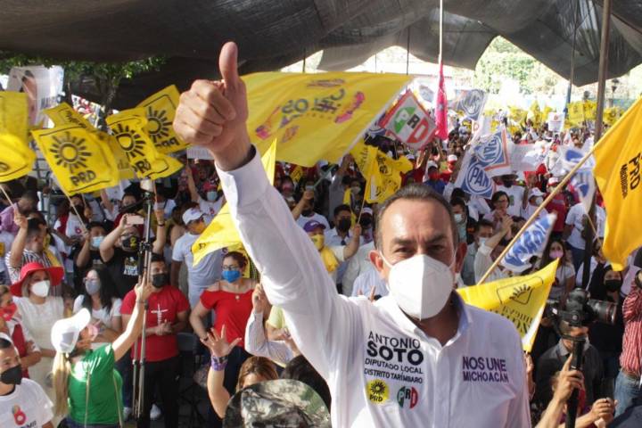 NOTICIAS 20/04/2021Con el apoyo de liderazgos y representantes sociales arranca Toño Soto campaña en TarímbaroEn la Plaza Municipal de Tarímbaro y arropado de liderazgos de la región, Antonio Soto Sánchez arrancó campaña como candidato a la diputación local por dicho distrito por el PRD y PRI, acto en el que estuvo Carlos Herrera Tello, aspirante a la gubernatura por el Equipo por Michoacán y el dirigente nacional del PRI, Alejandro Moreno Cárdenas.