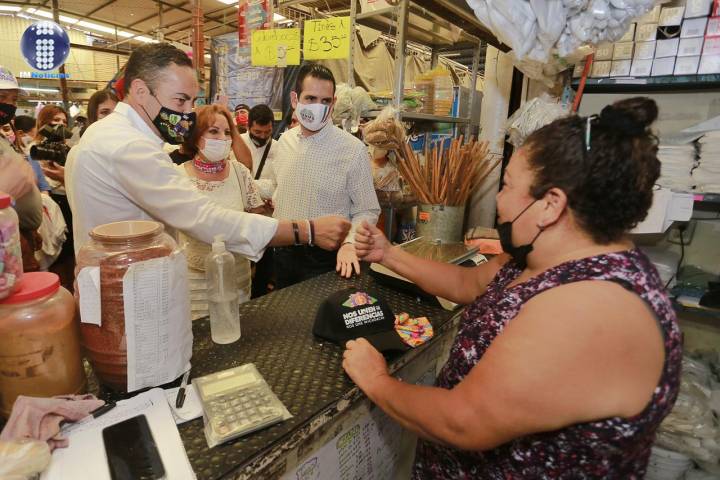 El abanderado del PRI, PAN y PRD realizó un recorrido por el mercado López Rayón para escuchar el sentir de los comerciantes, quienes externaron las dificultades que cuesta levantarse en medio de la epidemia por COVID-19.