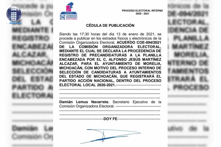 NOTICIAS 14/01/2021Avala PAN proyecto ciudadano de Alfonso MartÃnez a la alcaldÃa de MoreliaAlfonso MartÃnez Alcázar es formalmente, el precandidato del Partido Acción Nacional (PAN) rumbo a la presidencia municipal de Morelia.