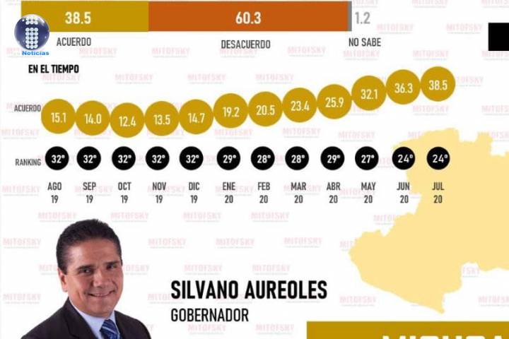 NOTICIAS 10/08/2020Crece Silvano Aureoles 18 puntos en solo cinco meses: Mitofsky