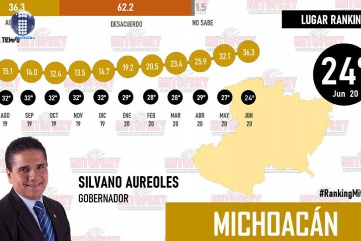 Lo anterior coloca a Aureoles Conejo tiene una aprobación de 36.3 por ciento.