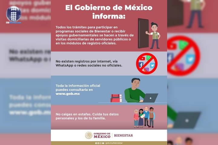 El gobierno federal detectó diversos anuncios que circulan en redes sociales, donde se ofrece apoyo para tramitar Tarjetas para el Bienestar o una supuesta Tarjeta Alimentaria de la extinta Secretaría de Desarrollo Social (Sedesol) u otras dependencias.