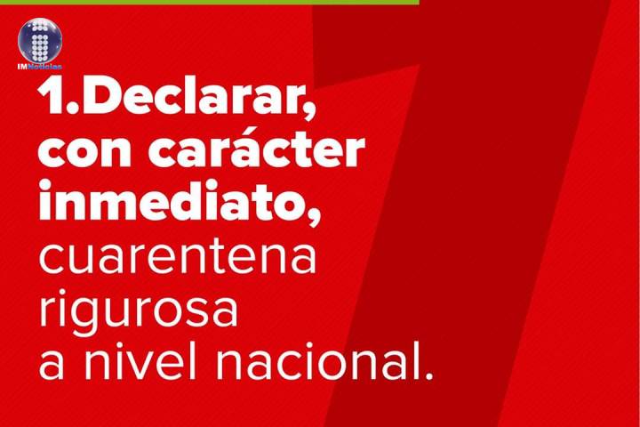 Plantea, entre otros aspectos, decretar una cuarentena a nivel nacional, eliminar el IVA en abril y mayo, y que el Gobierno complemente el salario de trabajadores afectados por los recortes ante la contingencia