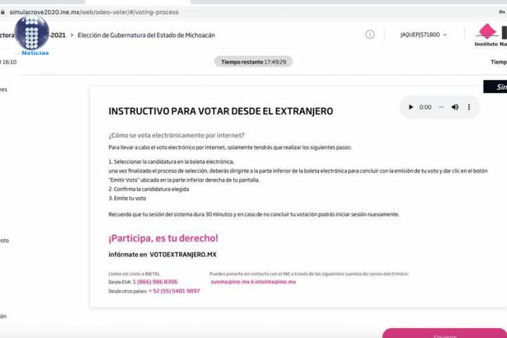 Con la participación de las Consejeras, el Consejero y personal del Instituto Electoral de Michoacán (IEM), asà como representantes de partidos polÃticos, se realizó el simulacro de voto electrónico desde el extranjero como parte de los trabajos a la implementación del voto electrónico por Internet para el 2021.