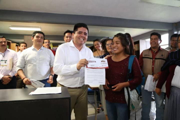 NOTICIAS 17/06/2019Entregan tarjetas Bienestar en normales de Cherán y TiripetíoEn cumplimiento del compromiso que hizo el Presidente de México, Andrés Manuel López Obrador, con la educación pública, la delegación de la Secretaría del Bienestar en Michoacán realizó una nueva entrega de tarjetas del programa Jóvenes Escribiendo el Futuro a estudiantes de las escuelas normales de Tiripetío y Cherán.