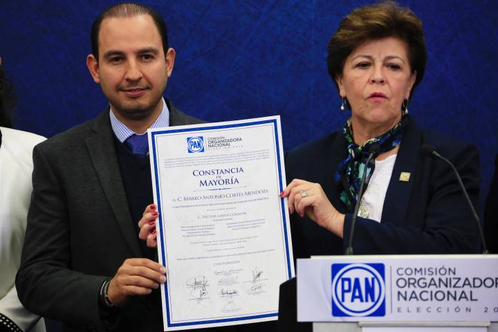 NOTICIAS 14/11/2018Entrega CONECEN Constancia de Mayoría a planilla encabezada por Marko CortésLa Comisión Organizadora Nacional de la Elección del Comité Ejecutivo Nacional del PAN entregó la Constancia de Mayoría a la planilla encabezada por Marko Antonio Cortés Mendoza, quien el próximo lunes rendirá protesta como Presidente Nacional.