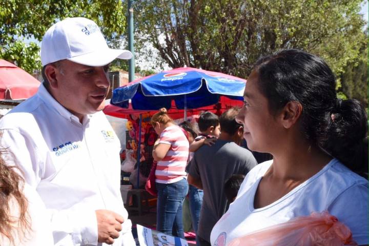 NOTICIAS 24/06/2018Carlos Quintana brindará mejores condiciones a comerciantes de tianguis y mercadosLos morelianos somos personas de trabajo, esfuerzo y ganas de salir adelante, debemos brindar oportunidades para detonar el desarrollo económico del municipio, iniciando por los tianguis y mercados, indicó Carlos Quintana Martínez, candidato a presidente municipal de la coalición "Por Morelia al Frente", al caminar y platicar con los comerciantes del tianguis de Avenida Pedregal.