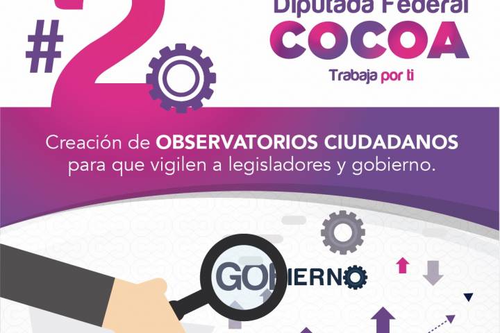 NOTICIAS 20/06/2018Parlamento Abierto y Observatorios Ciudadanos propuesta de Cocoa Calderón La candidata Independiente por la Diputación Federal del distrito 10 de Morelia, Luisa María Calderón "Cocoa" manifestó que para acabar con la corrupción, hay que ponerles cola a los legisladores y gobernantes para que los ciudadanos los vigilen y pidan cuentas de cada peso que se gasta; además aseguró que llegando a la Cámara de Diputados convocará a las Cámaras empresariales, Organismos de la Sociedad Civil y Ciudadanía para que sea ... Ver más...