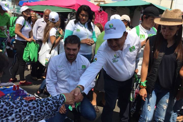 El candidato del Partido Verde Ecologista de México (PVEM) por la Presidencia de Morelia, Constantino Ortiz, recorrió el mercado de la Avenida Pedregal para impulsar la iniciativa "Juega de Local" que es uno de sus ejes de campaña para promover la compra en los tianguis y negocios familiares, a fin de mejorar la economía municipal.