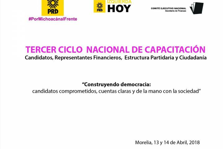 NOTICIAS 12/04/2018Ante proceso electoral, capacitará PRD a candidatos en temas fiscales Ante el proceso electoral que se avecina para este 1 de julio, el Comité Ejecutivo Estatal del Partido de la Revolución Democrática, en coordinación con su homólogo Nacional, brindará un taller de capacitación sobre temas fiscales a sus candidatos.