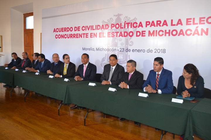 NOTICIAS 23/01/2018Firman Gobierno, partidos y órganos electorales, acuerdo de Civilidad "El acuerdo que hoy se signa tiene por fin refrendar ante la sociedad michoacana, el interés superior por hacer del proceso electoral, un ejemplo de legalidad y civilidad democrática, donde las diferencias sean expresadas de manera libre y respetuosa", manifestó el secretario de Gobierno, Adrián López SolÃs, al encabezar la firma del Acuerdo de Civilidad PolÃtica para la Elección Concurrente en el Estado de Michoacán 2018.