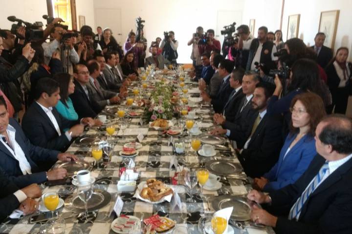 NOTICIAS 04/09/2017Sin Morena y PT, instalan Mesa de Gobernabilidad para el proceso electoralEl gobernador del estado, Silvano Aureoles Conejo, así como el presidente del Instituto Electoral de Michoacán, Ramón Hernández Reyes, y el vocal ejecutivo de la Junta Local del Instituto Nacional Electoral, David Delgado Arroyo, instalaron la Mesa de Gobernabilidad para el Proceso Electoral.