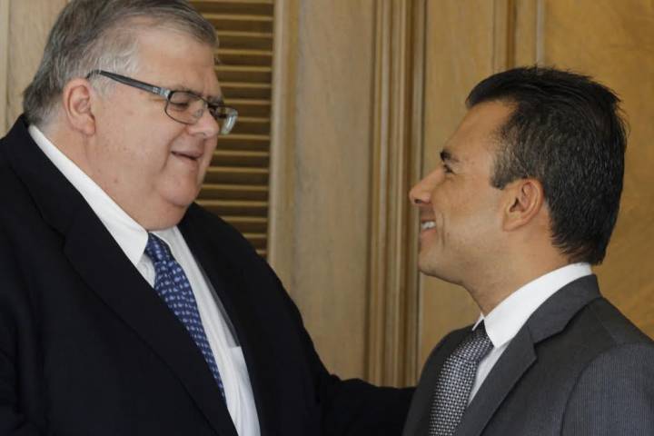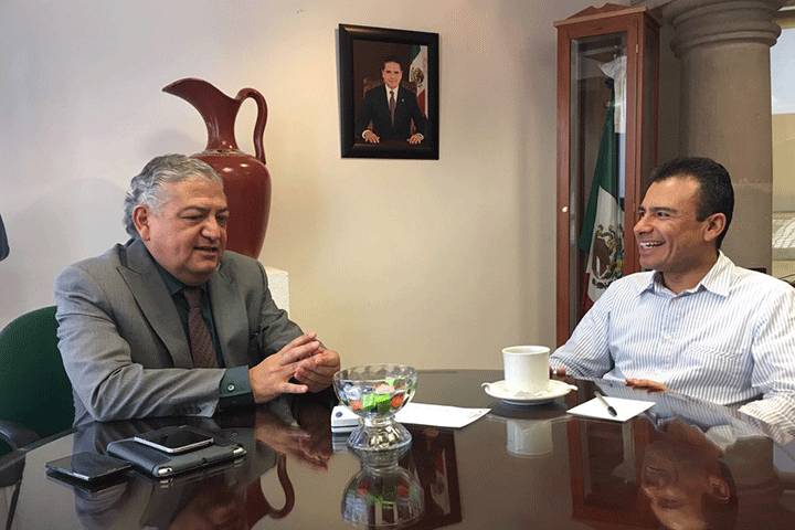 Con la finalidad de fortalecer la coordinación institucional y coadyuvar desde sus respectivos campos de competencia en la solución de los problemas que aquejan a los municipios michoacanos y a la administración estatal, este día se reunió el diputado federal Fidel Calderón Torreblanca con el Secretario de Finanzas y Administración del gobierno del estado Carlos Maldonado Mendoza.